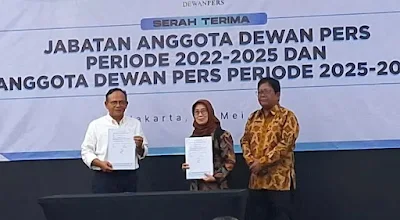 serah terima jabatan berlangsung di Kantor Dewan Pers, Jakarta Pusat, Rabu.(14/5)